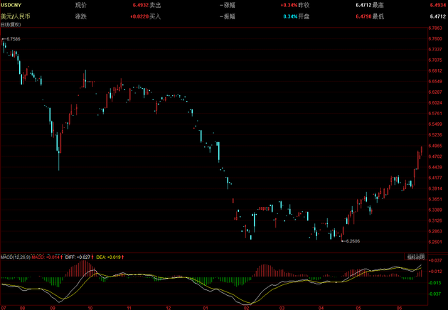 6月21日,在岸人民币兑美元早盘大跌近200点至6.4947元,创1月12日以来新低。