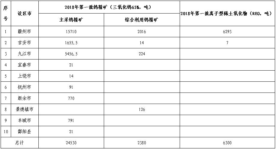 一、2018年度稀土矿钨矿开采总量控制指标分两批下达,本次下达第一批。全年开采总量控制指标待自然资源部下达后,另行分配。