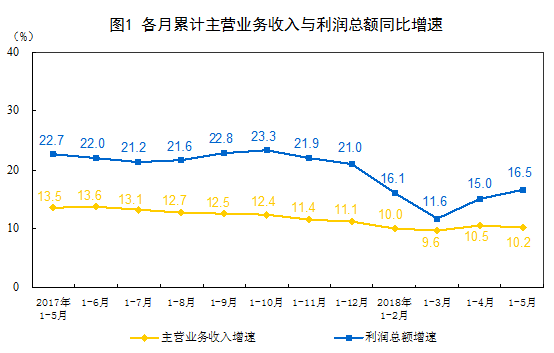 1-5月份,全国规模以上工业企业实现利润总额27298.3亿元,同比增长16.5%,增速比1-4月份加快1.5个百分点。