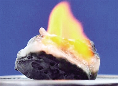 天然气水合物又称“可燃冰”,是水和天然气在高压低温情况下形成的类冰状结晶物质。 可燃冰的能量密度非常高,同等条件下燃烧产生的能量比煤、石油、天然气要多出数十倍;并且,燃烧后仅会产生少量二氧化碳和水,是真正的绿色能源。
