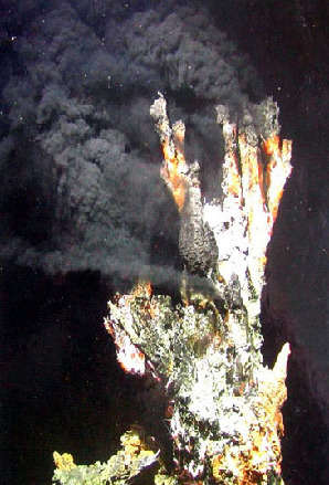 它的成因在于海水从地壳裂缝渗入地下,遇到熔岩被加热,溶解了周围岩层中的金、银、铜、锌、铅等金属后又从地下喷出。这些金属经过化学反应形成硫化物沉积到附近的海底,像“烟囱”的形状一样堆积起来,因此也被形象地叫做“黑烟囱”。