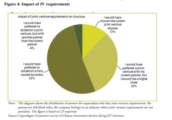 但是,这种不满主要是对合资股比的限制,即外资持股最多也不能超过50%。其中,有超过半数的外企就在这份调查中表示他们希望可以拥有对企业的全部股权。