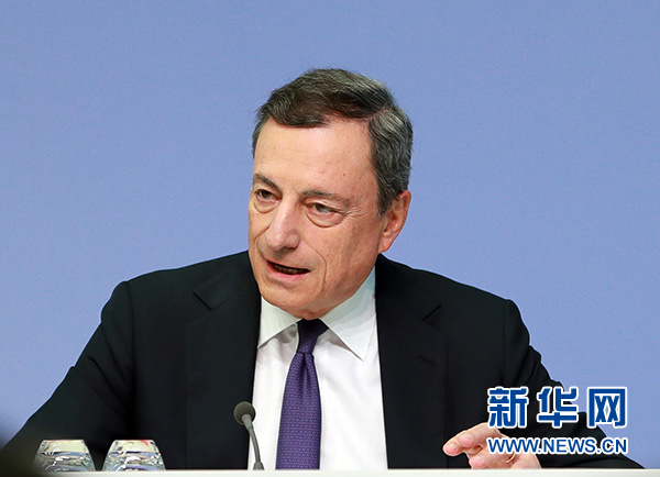 7月26日,在德国法兰克福的欧洲中央银行总部,欧洲央行行长德拉吉出席新闻发布会。 新华社记者 罗欢欢 摄