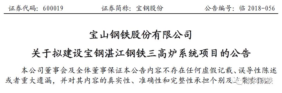 宝钢股份公告,拟建设宝钢湛江钢铁三高炉系统项目,初步预测项目总投资188.5亿元。