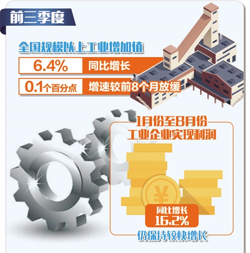 1月份至9月份,全国规模以上工业增加值同比增长6.4%,增速较前8个月放缓0.1个百分点,工业生产保持平稳运行。41个工业大类行业中有40个行业增加值同比增长。