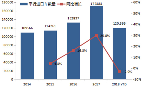 2014年-2018年9月中国平行进口市场发展(单位:辆)