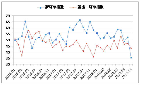 图3 2016年以来新订单指数、新出口订单指数变化情况
