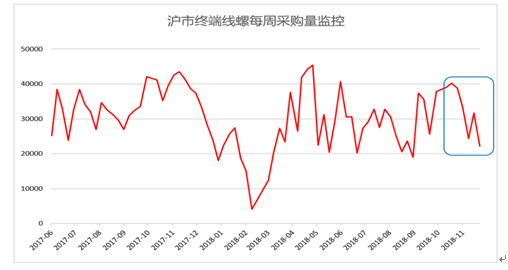 图4 2017年6月份以来沪市终端线螺每周采购量监控