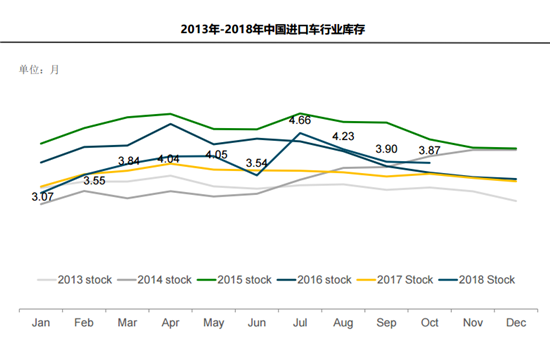 供给与需求相对平衡之下,进口车库存维持稳定的状态。10月,进口车行业库存深度为3.87个月,较上月有所下滑。王存强调,今年进口车行业库存处于正常水平,主要是消费者需求不旺。而在2015年和2016年库存持续下降,主要是行业库存较高而产生的去库存现象。