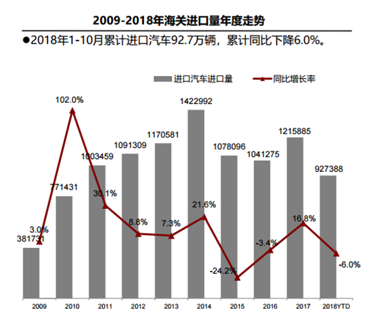 王存表示,由于九、十月份进口车受到3C认证或者港口保险的影响,部分车辆无法上牌,导致报关的车辆大幅减少。此外,受很多车型耐久性试验未完成,对美产汽车加征关税以及国六排放即将实施的影响,平行进口汽车下滑明显。