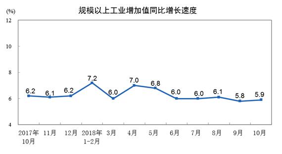 国家统计局数据显示,10月份,全国规模以上工业增加值同比实际增长5.9%,增速比9月份加快0.1个百分点。其中,制造业增加值同比增长6.1%,增速比9月份加快0.4个百分点。