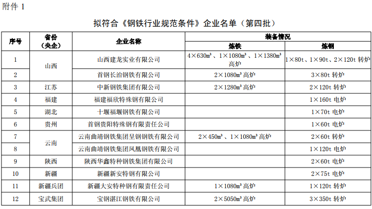 1.拟符合《钢铁行业规范条件》企业名单(第四批)