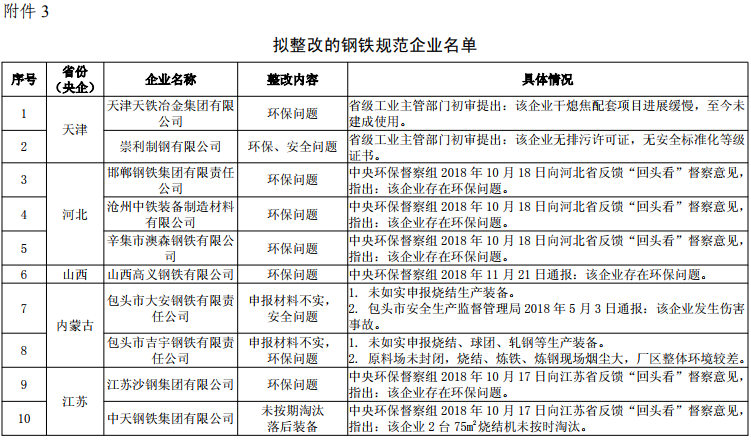 3.拟整改的钢铁规范企业名单