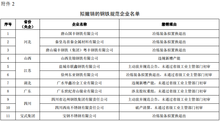 2.拟撤销的钢铁规范企业名单