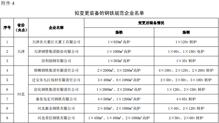 4.拟变更装备的钢铁规范企业名单