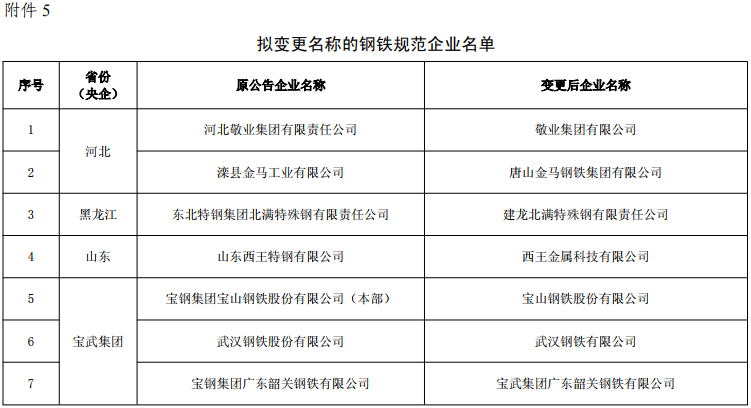 5.拟变更名称的钢铁规范企业名单