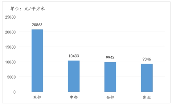 而从区域分布来看,东部发达城市较多,以20863元/平方米的二手住宅挂牌价领先于其他区域,西部、中部、东北挂牌均价差距较小。西部及东北挂牌价均低于万元,挂牌均价分别为9942元/平方米、9346元/平方米。