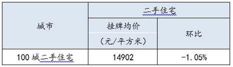 从不同等级城市挂牌均价环比情况来看,各等级均有不同程度的下跌,一线城市调控仍在继续,市场保持缓慢下跌态势,环比下跌1.02%;二线城市方面,由于部分二线城市调控加码,重点二线城市调控高压,二手住宅挂牌均价环比下跌幅度最大,跌幅1.14%;三四线城市虽然受政策影响下跌,但由于市场发展分化现象较为明显,部分城市仍然环比上涨,因此整体环比下跌小于二线城市,下跌0.99%。