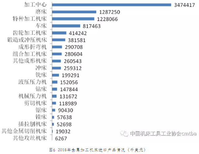 由图6可见,按金额计算,排在前5位的进口产品是加工中心、磨床、特种加工机床、车床、齿轮加工机床。