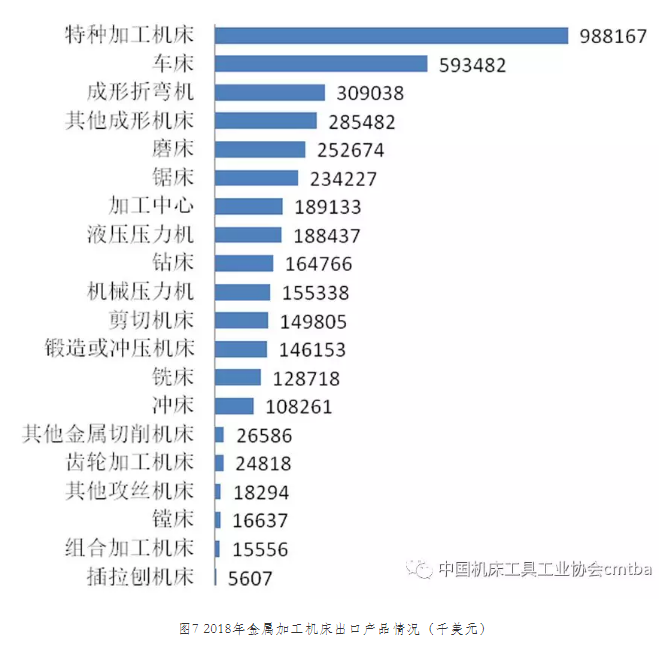 由图7可见,按金额计算,排在前5位的出口产品是特种加工机床、车床、成形折弯机、其他成形机床、磨床。