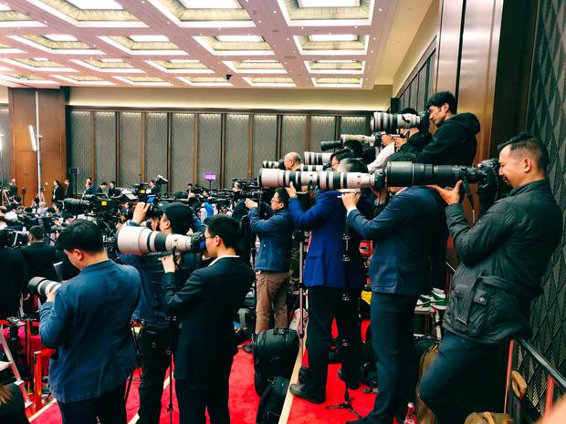 △记者会现场的各国摄影记者。 习主席在记者会上透露,在这次论坛筹备进程中和举办期间,各方达成了283项务实成果。论坛期间举行的企业家大会签署了总额640多亿美元的项目合作协议。习主席说,这些成果充分说明,共建“一带一路”应潮流、得民生、惠民生、利天下。