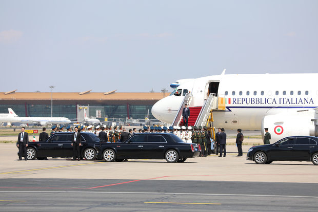 △26日中午13点45分,意大利总理孔特乘专机抵达北京。在出席高峰论坛的39位外方领导人中,他是最后一个抵达的。(央视记者魏帮军拍摄)