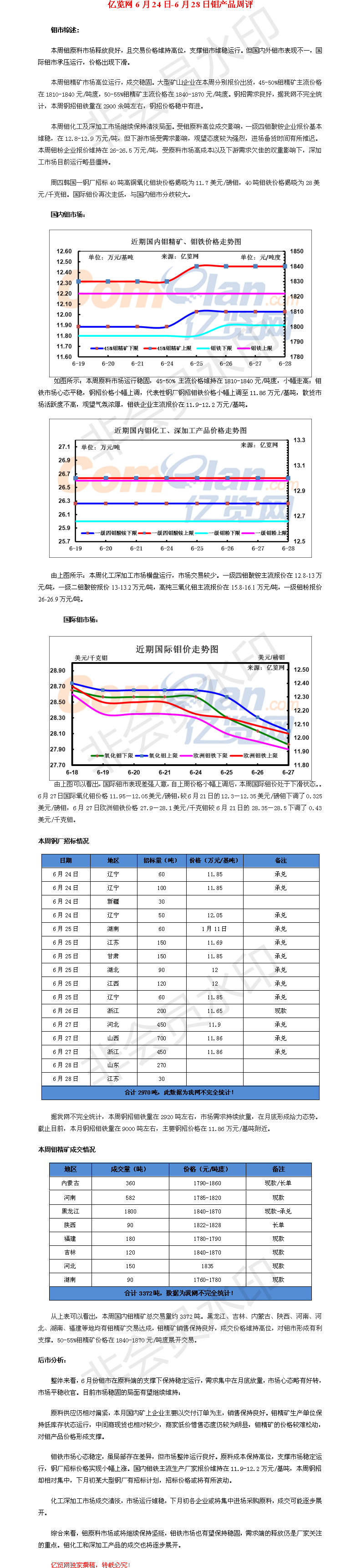 今日观察6-26:钼精矿放量成交 钼市趋稳运…