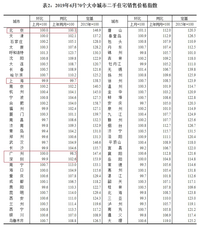 数据显示,6月一线城市二手房价格无一上涨,北京、广州持平,上海、深圳微跌。其中,北京二手房价格连续两月持平。