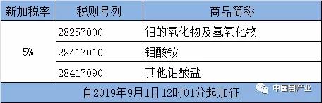 一、自2019年9月1日12时01分起,对附件1第一部分所列270个税目商品加征10%的关税,对附件1第二部分所列646个税目商品加征10%的关税,对附件1第三部分所列64个税目商品加征5%的关税,对附件1第四部分所列737个税目商品加征5%的关税,具体商品范围见附件1。