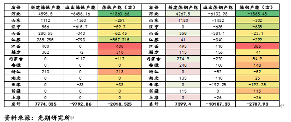 我们对2018年以后公布的钢铁行业产能置换计划进行整理,并将各地公布的产能置换总量以及投产装置进行了汇总。