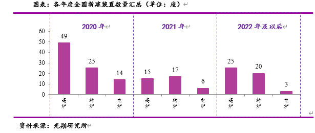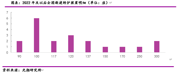 新建装置规模方面,据统计2020年新增49座高炉、25座转炉及14座电炉;2021年预计新增15座高炉、17座转炉及6座电炉;2022年及以后拟新建25座高炉、20座转炉及3座电炉。