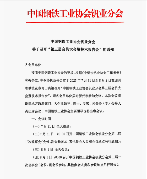 中国钢铁工业协会钒业分会关于召开“第三届会员大会暨技术报告会”的通知