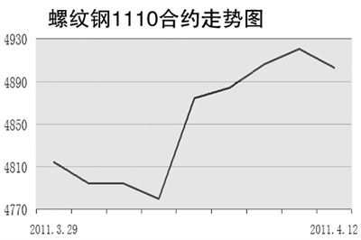 螺纹钢RB1110合约4月12日开于4902元/吨,最高价4918元/吨,最低价4878元/吨,收于4903元/吨。