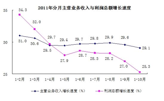 1-10月份,全国规模以上工业企业实现利润41217亿元,同比增长25.3%。10月当月实现利润4383亿元,同比增长12.5%。