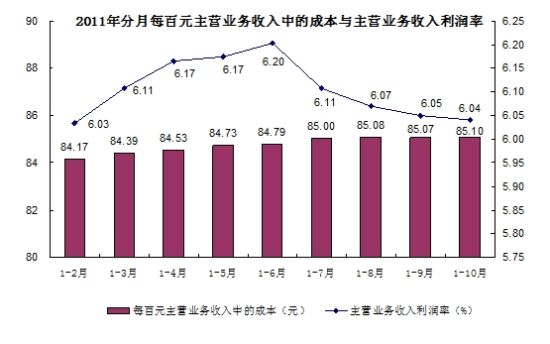 规模以上工业企业实现主营业务收入681845亿元,同比增长29.1%。每百元主营业务收入中的成本为85.1元,主营业务收入利润率为6.04%。