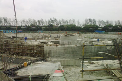 环形炉可分为内圈、外圈两个部份,开挖完毕后垫层与钢筋绑扎的工作开始紧密进行,电气预埋管工作也随之铺开。