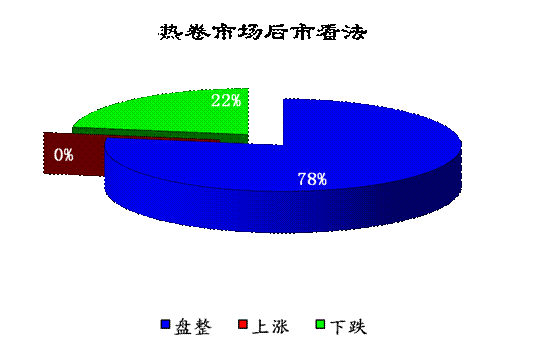 在所有的调查样本中,流通商和钢厂对下周螺纹市场看跌为44%、盘整为56%、上涨为0%;对下周热卷市场看跌为22%、盘整为78%、上涨为0%。本周市场热卷走势稍强,不过由于终端需求持续的走弱,尽管部分商家年末拉涨的意愿较为强烈,但是随着北方品材南下的冲击,加上年底资金的紧张程度,市场短期可能还将保持一个弱势整理的格局。
