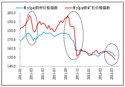 图表4 铁矿石和钢价指数关系