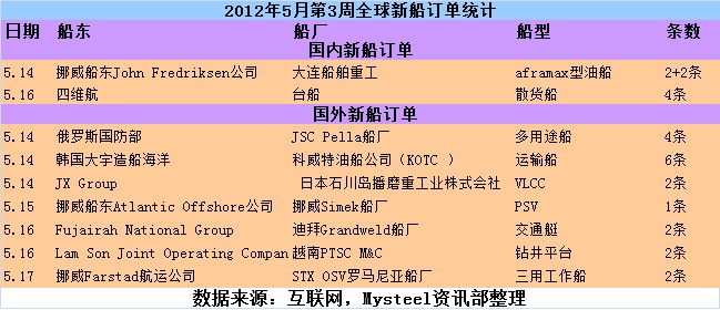 其中,上周国内新接船舶订单8条,较前一周数量减少了1条,新接船舶订单数量连续三周维持在个数,新接订单仍多为低附加值的散货船,船东则以国外为主。