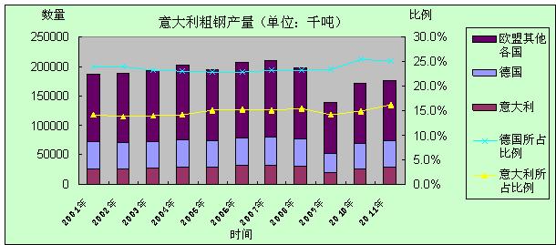意大利是欧盟第二大钢铁生产和消费大国,仅次于德国。