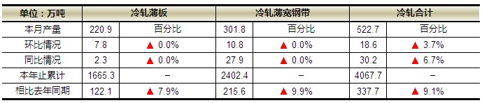 表一:8月份我国冷轧板卷产量情况(单位:万吨)