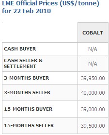 亿览网讯:由于春节前期炒作影响,金属钴价格曾一度走高,昨天是金属钴期货第一天,并没出现过热势头,相反市场表现很冷静。三月期钴官方报价40000美元/吨,国内现货钴价稍稍回落,目前在38万元/吨附近。