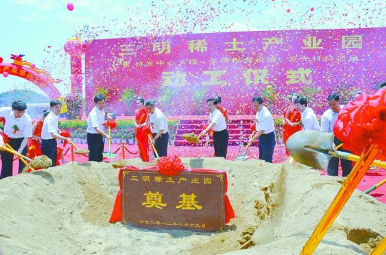 7月19日上午,三明稀土产业园正式开工建设。省长苏树林出席动工仪式,并为三明稀土产业园奠基。