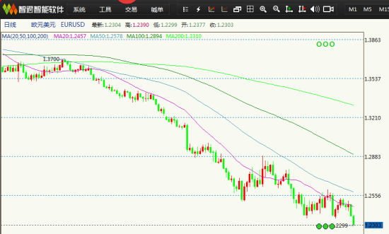 欧元兑美元(1.2316, 0.0007, 0.06%)跌至逾两年最低,令金属价格承压。美元强劲令商品价格对持有其他货币的投资人而言更为昂贵。