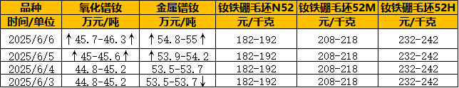 受此影响,单镨单钕价格也相应下调。其中,氧化钕报价在43.3-43.7万元/吨,金属钕报价