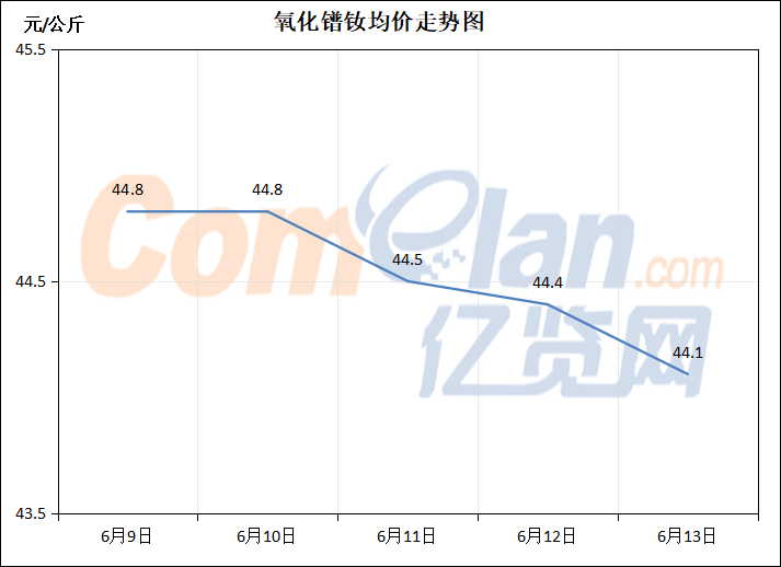 受此影响,单镨单钕价格也相应下调。其中,氧化钕报价在43.3-43.7万元/吨,金属钕报价