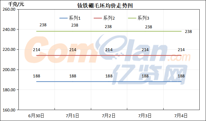 本周磁材价格整体保持稳定,交易活跃程度与前一天相当。一方面,氧化物、金属等原料价格持续稳定,磁材企业根据需求安排生产;另一方面,终端客户逐渐进入需求淡季,新增订单量减少,市场需求有所减弱。