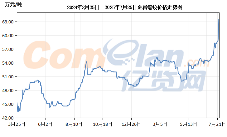 钆价格稳定。周内氧化钆价格稳定,下游订单一般,询单采购少量,商家出货不多,下游按需采购,低价现货不多,成交少量,当前氧化钆报价16.5-16.8万元/吨;钆铁价格较稳,磁材订单一般,下游询单少量,金属厂出货少量,当前钆铁报价16-16.2万元/吨。