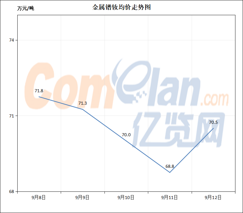 本周稀土价格下跌为主。镨钕产品价格持续下跌,主要在于市场情绪较弱,贸易商情绪偏弱,现货随之报出,下游市场买涨不买跌,采购意向较弱,成交支撑不足,报价出货持续下探,随着上游市场更低价出货减少,且到达部分磁材可接货价格,市场招标采购增加,价格小幅反弹,更多成交情绪有待观望。镝价格坚挺,铽价格下滑,镝主要在于中稀采购,市场低价出货不多,价格尚可支撑,铽因前期价格上涨,目前需求减弱,接货价格压低,价格处于回调阶段,但整体波动幅度有限,镝涨幅不大,铽继续下跌空间有限。对于后市,镨钕产品供需持续紧张,市场情绪一般,刚需采购仍存,且国庆节前备货意向尚可,预计近期稀土价格小幅震荡上调。
