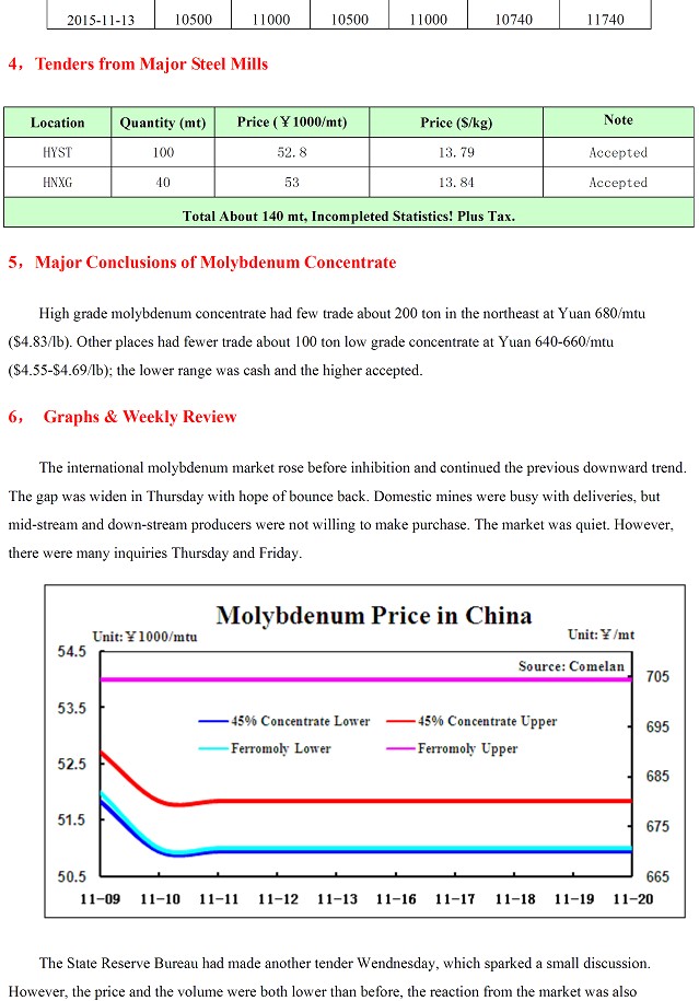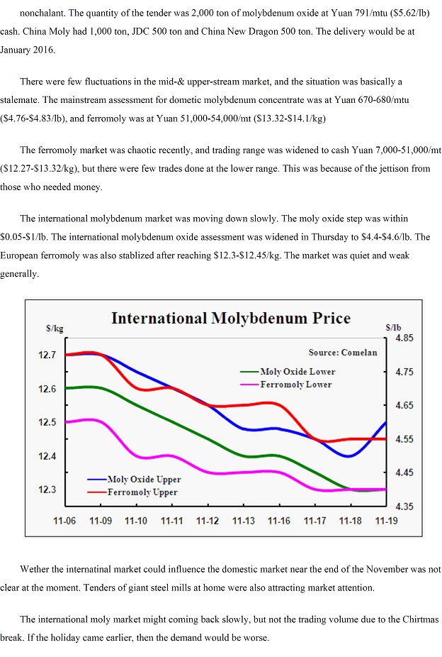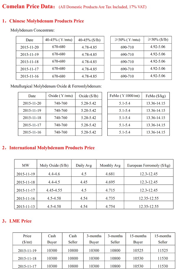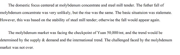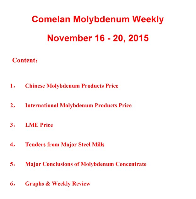 Comelan Molybdenum Weekly June 29 - July 3, 2015